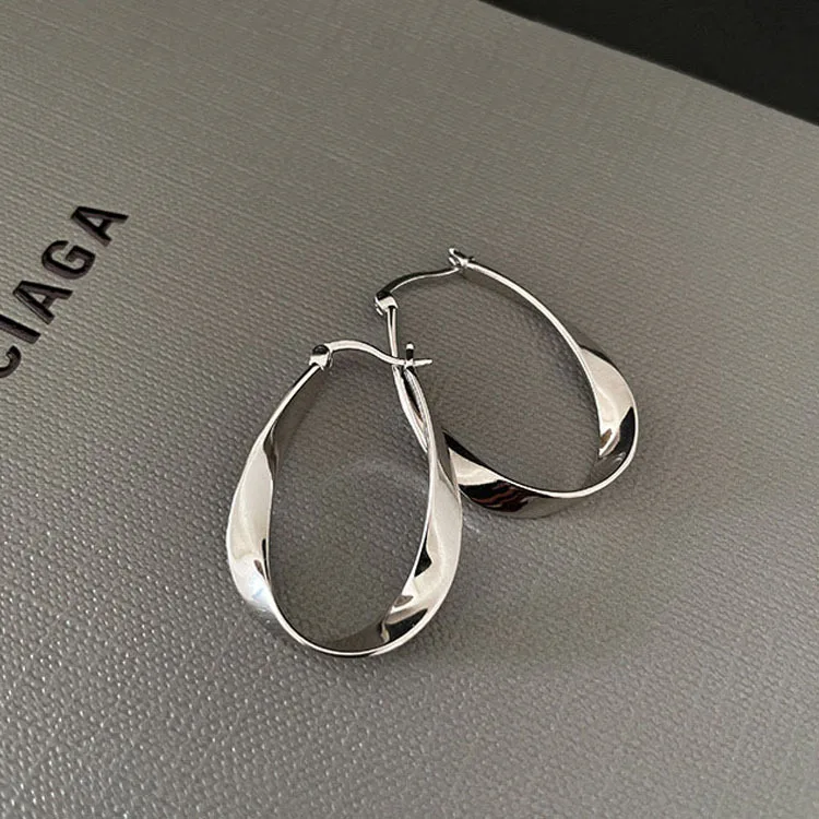 Elevate your style with these trendy silver geometric twisted hoop earrings. Crafted from high-quality zinc alloy, they offer a lightweight yet durable design that is perfect for everyday wear. The unique twisted Mobius strip shape adds a modern, artistic flair, making them a standout accessory for any outfit.